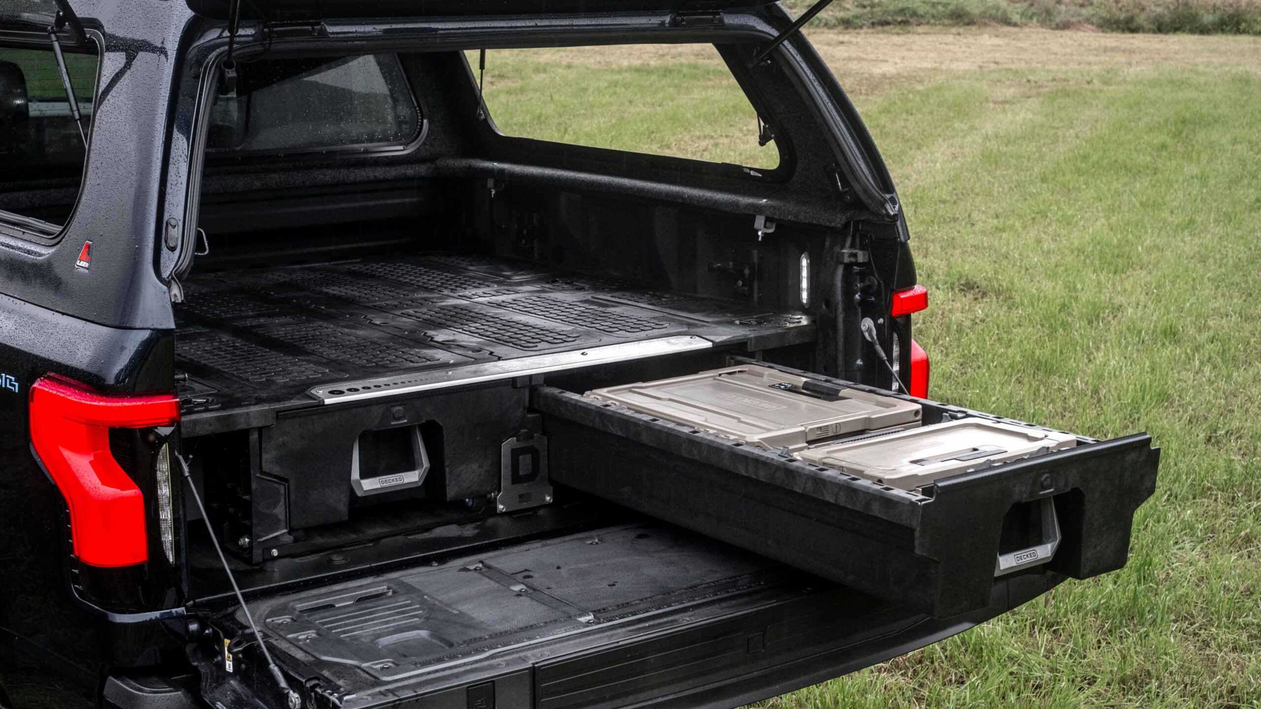Decked skuffesystem til Lightning har to, like store og solide skuffer. Denne utgaven passer med stikkontaktene på lasteplanet og er derfor en god match. Decked er værbestandig og motstandsdyktig ved temperatursvingninger og monteres enkelt med basis håndverktøy og drill. Man kan lett demontere gulvet på 15-20 min til fire store deler som kan stables pent bort ved behov.